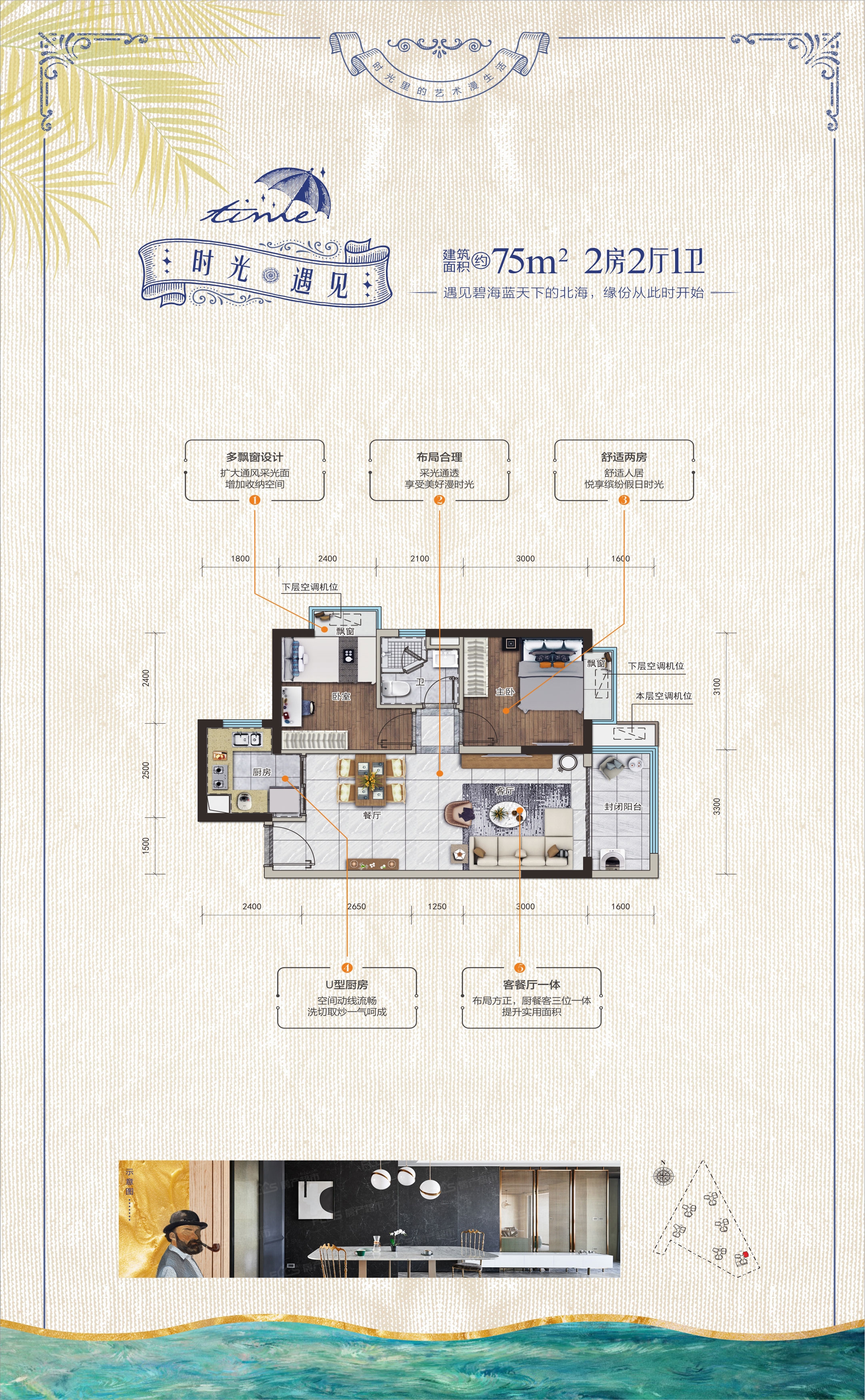 碧桂园·海上时光7500元/平方米。主力户型为75平-110平2居