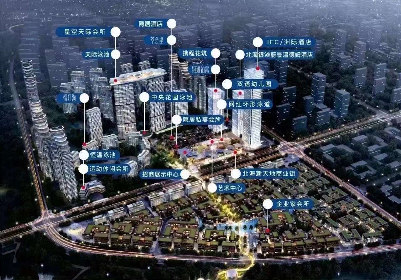 北海市银海区银滩东cbd海景大道与湖北路交汇处(冯家江湿地公园旁)