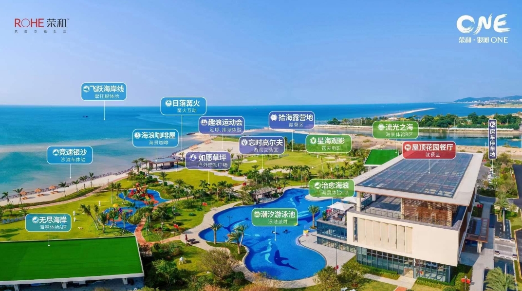 荣和·银滩one项目总占地面积277亩,总建筑面积30万㎡,综合容积率1.55。荣和银滩one项目度假配套丰富,滨海园林、商业街、休闲会所、幼儿园等配套一应俱全,属集住宅、旅游、休闲、文化为一体的高端旅游项目。荣和·银滩one自身配套:5400㎡15个班的社区幼儿园、7000平的滨海商业街、海景俱乐部、室内恒温、室外游泳池、架空层邻里中心、健身广场、羽毛球场、健康跑道、鹅卵石休闲步道、婚礼草坪、篝火广场、沙滩排球、滨海高尔夫体验区、赶海体验区等。